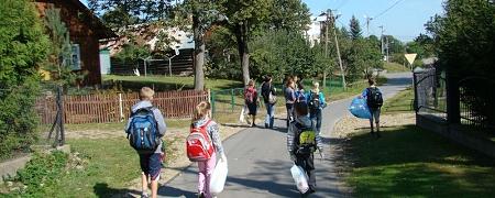 Na terenie pobliskiego lasu przygotowane zostało ognisko. Dzieci piekły kiełbaski, jabłka i ziemniaki, a później wesoło się bawiły. Po odpoczynku wszyscy rozeszli się, aby posprzątać najbliższą okolicę. W ten sposób nasi uczniowie włączyli się do akcji Sprzątania Świata. Wszyscy byli bardzo zadowoleni z tak niezwykłej lekcji.