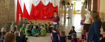 Celem quizu było pogłębianie wiadomości o życiu patrona szkoły, kształtowanie postaw patriotycznych i zwrócenie uwagi na konieczność zachowania pamięci o przyszłości. Przedstawiciele poszczególnych klas odpowiadali na wylosowane pytania. Wszyscy wspaniale udzielali prawidłowych odpowiedzi.